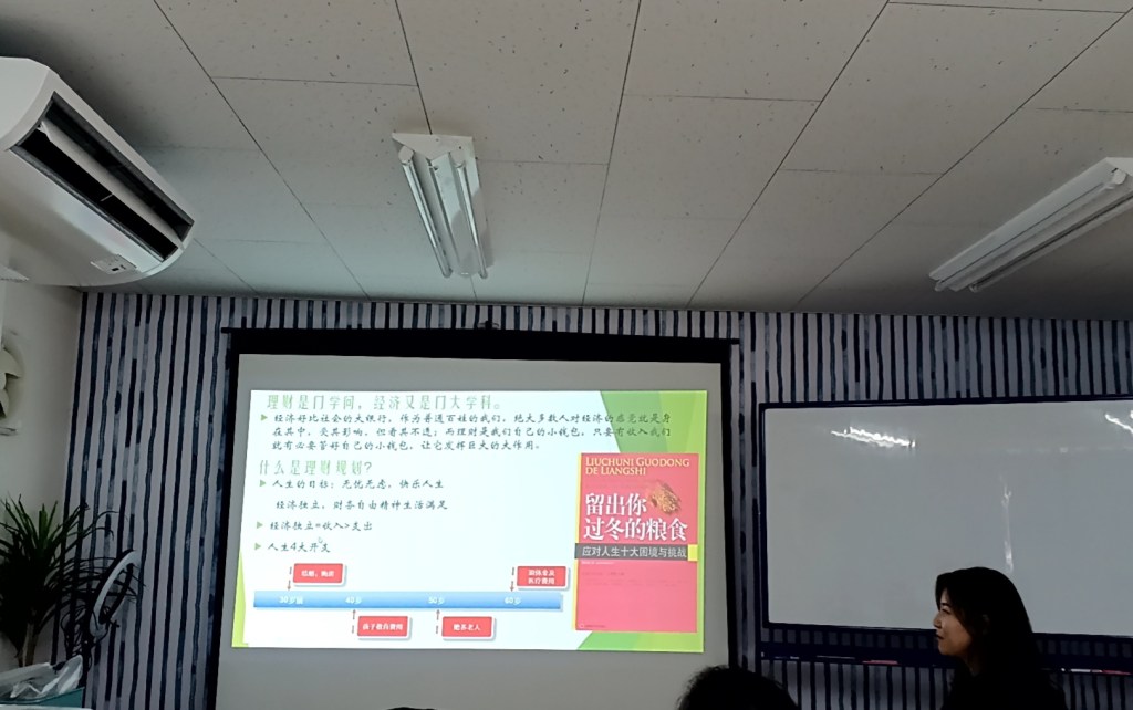 해당 모임에서 99급 류련화(刘莲花) 학우는 경제주기에 기초한 재테크 관리라는 주제로